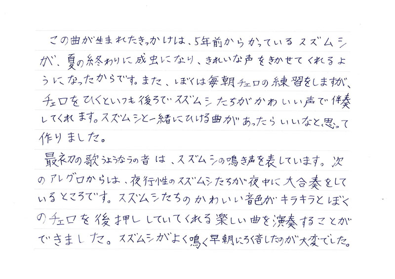 ■ ひびきあうチェロの音とスズムシの声。