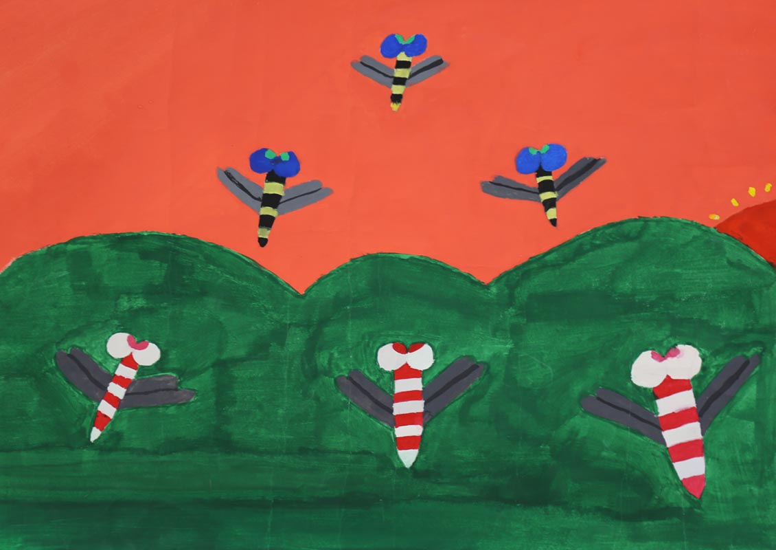 夕焼けにとぶトンボ