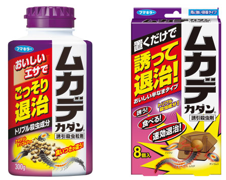 「ムカデカダン誘引殺虫粒剤」「ムカデカダン誘引殺虫剤」