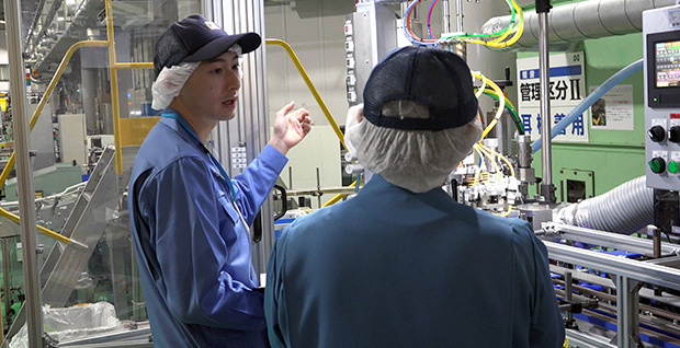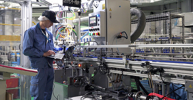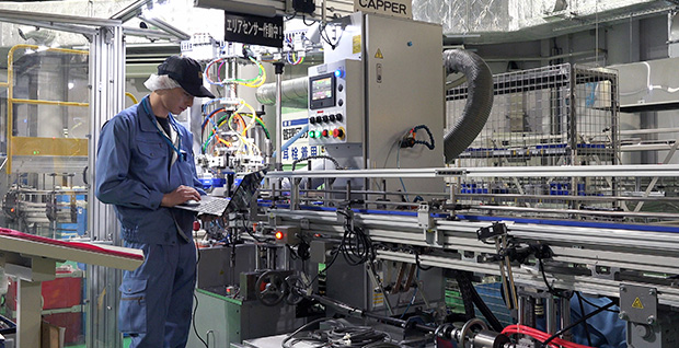 スムーズに製品が流れたらホッと一息。「この製品で世界に感動を与えられたらいいなぁ」なんて思いながら、生産ラインの改善点がないかをチェックします。 -